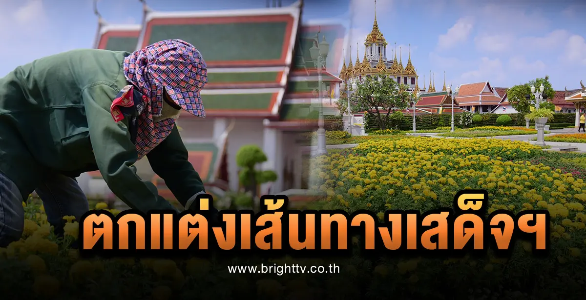 กทม.ตรวจความเรียบร้อยการตกแต่งต้นไม้และไม้ดอกไม้ประดับใน เส้นทางเสด็จพระราชดำเนินเลียบพระนคร ในเส้นทางขบวนพยุหยาตราทางสถลมารคและสถานที่สำคัญ ประยุกต์ลายไทยเป็นพรมดอกไม้ประดับตกแต่งในงานพระราชพิธีบรมราชาภิเษก