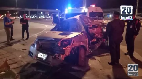 เกิดเหตุรถเก๋งซิ่งฝ่าไฟแดง ตัดหน้ารถบรรทุกพ่วง 18 ล้อ ถูกอัดยับลากไกลหลายสิบเมตร บริเวณสี่แยกหน้ามหาวิทยาลัยพะเยา