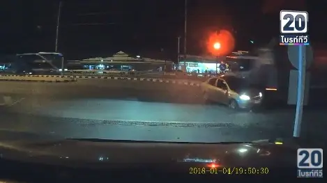 ภาพจากกล้องวงจรปิดและกล้องหน้ารถ สามารถบันทึกเหตุการณ์อุบัติเหตุที่บริเวณแยกไฟแดงหน้ามหาวิทยาลัยพะเยา ตำบลแม่กา อำเภอเมือง จังหวัดพะเยา ขณะที่รถยนต์ ยี่ห้อเซฟโรเลต กำลังวิ่งฝ่าไฟแดง ตัดหน้ารถบรรทุกพ่วง 18 ล้อ ยี่ห้อฮีโน่ แต่ไม่พ้น จึงถูกรถพ่วงพุ่งเข้าชนอย่างรุนแรง จนรถยนต์ได้รับความเสียหายและพังยับเยิน โดยมีผู้ได้รับบาดเจ็บติดอยู่ภายในตัวรถ