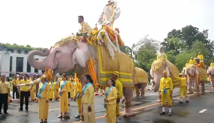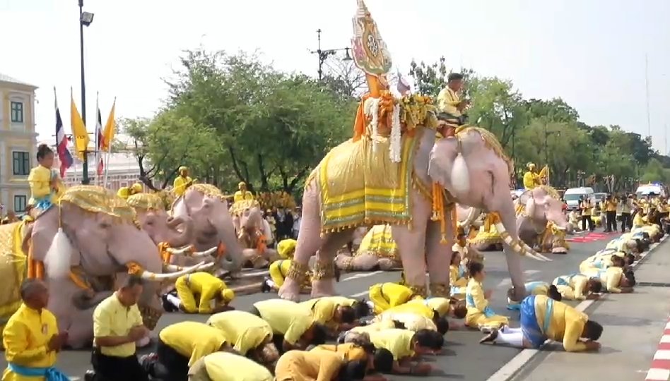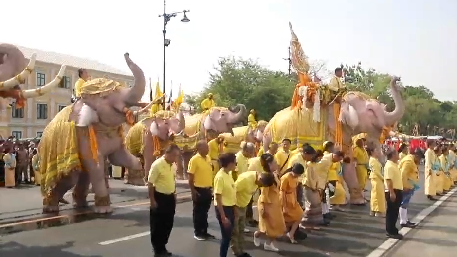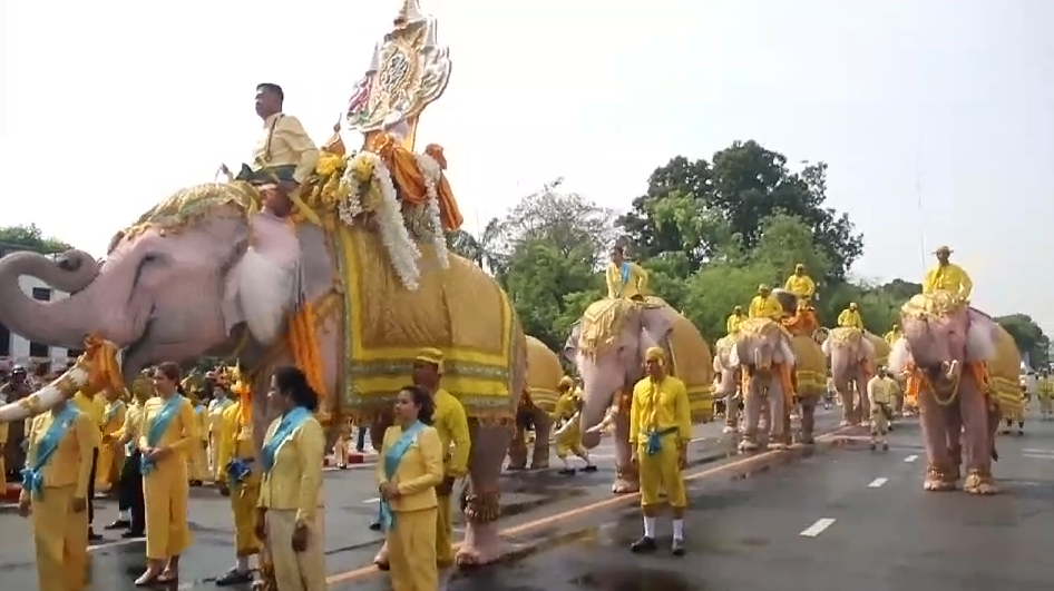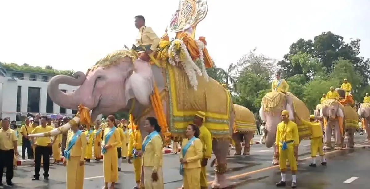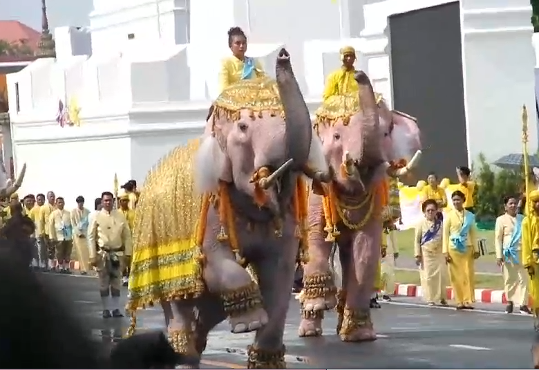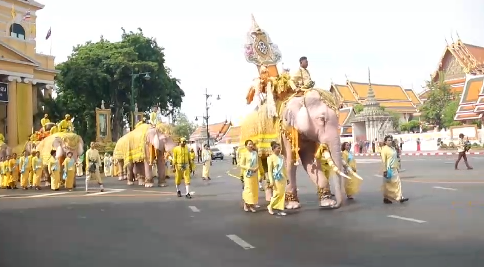 กลุ่มคชสารคู่แผ่นดินนำ ช้างคชลักษณ์ 11 เชือก เดินถวายพระพรชัยมงคล พระบาทสมเด็จพระวชิรเกล้าเจ้าอยู่หัว