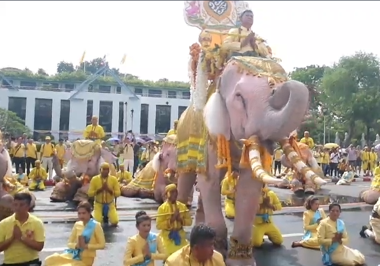 7 พ.ค. 2562 เมื่อช่วงเช้าที่ผ่านมา มูลนิธิพระคชบาล วังช้างอยุธยา แล เพนียด ร่วมกับกลุ่มคชสารคู่แผ่นดินกว่า 500 คน นำช้างคชลีลา จำนวน 10 เชือก พร้อมด้วยช้างวัง “พลายสยาม” ที่ประดับตราสัญญาลักษณ์ พระราชพิธีบรมราชาภิเษก พุทธศักราช 2562 จำนวน 1 เชือก ตั้งขบวนเทิดพระเกียรติ เพื่อทำการถวายพระพรชัยมงคล พระบาทสมเด็จพระเจ้าอยู่หัวฯ ณ หน่วยบัญชาการรักษาดินแดน