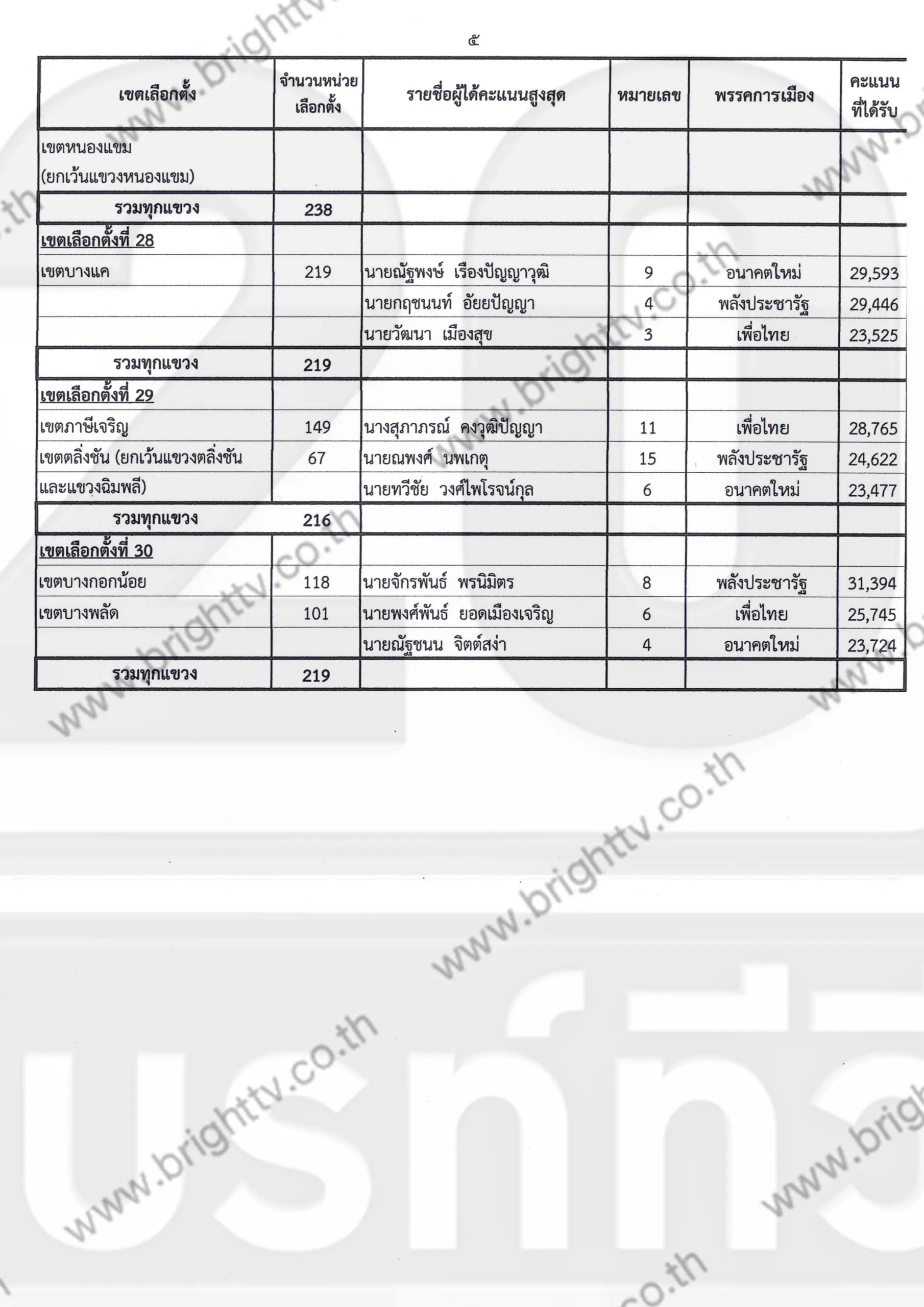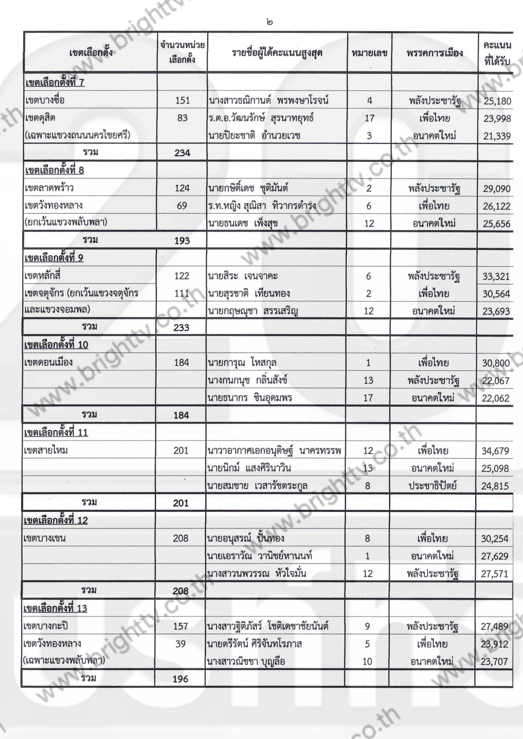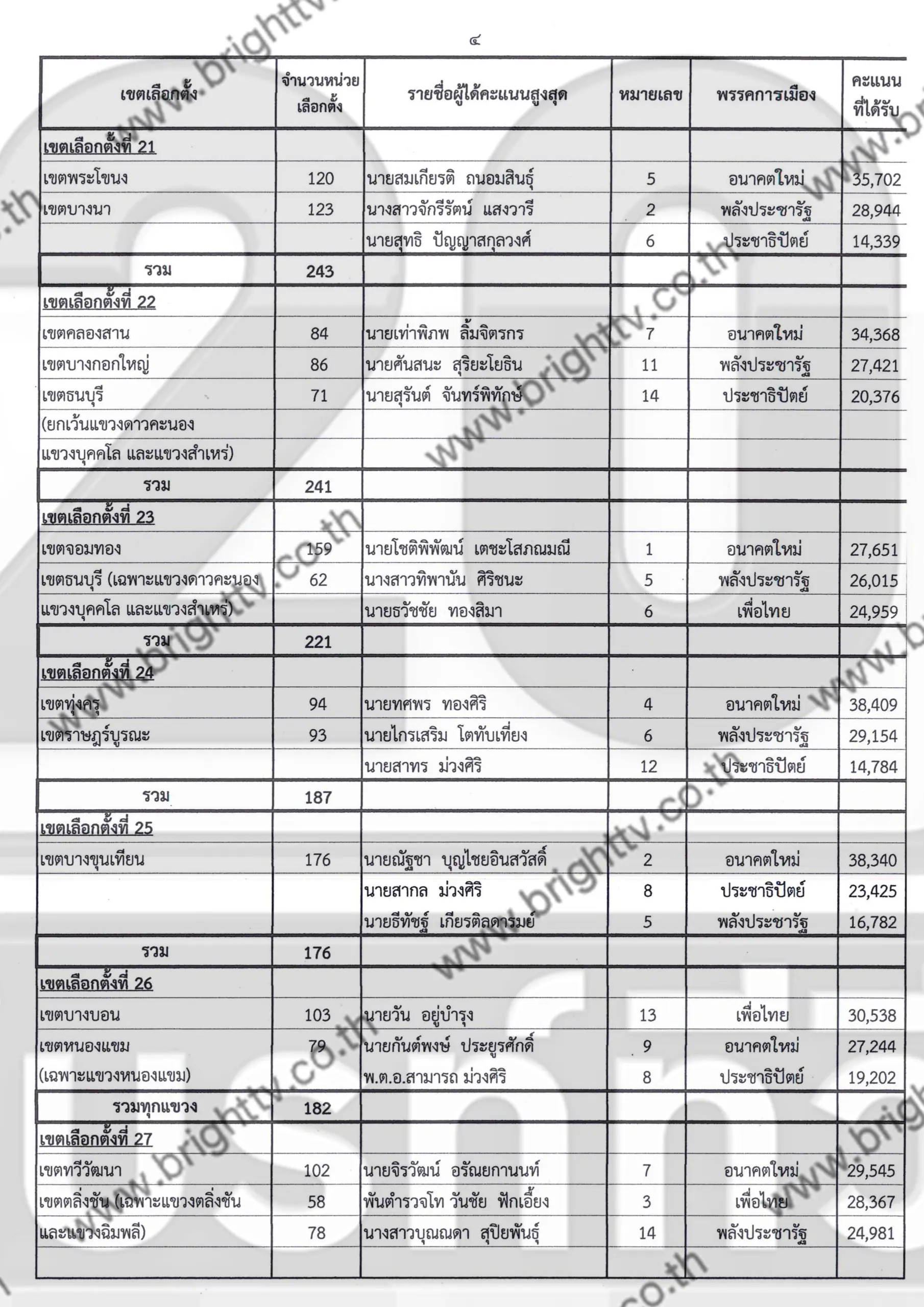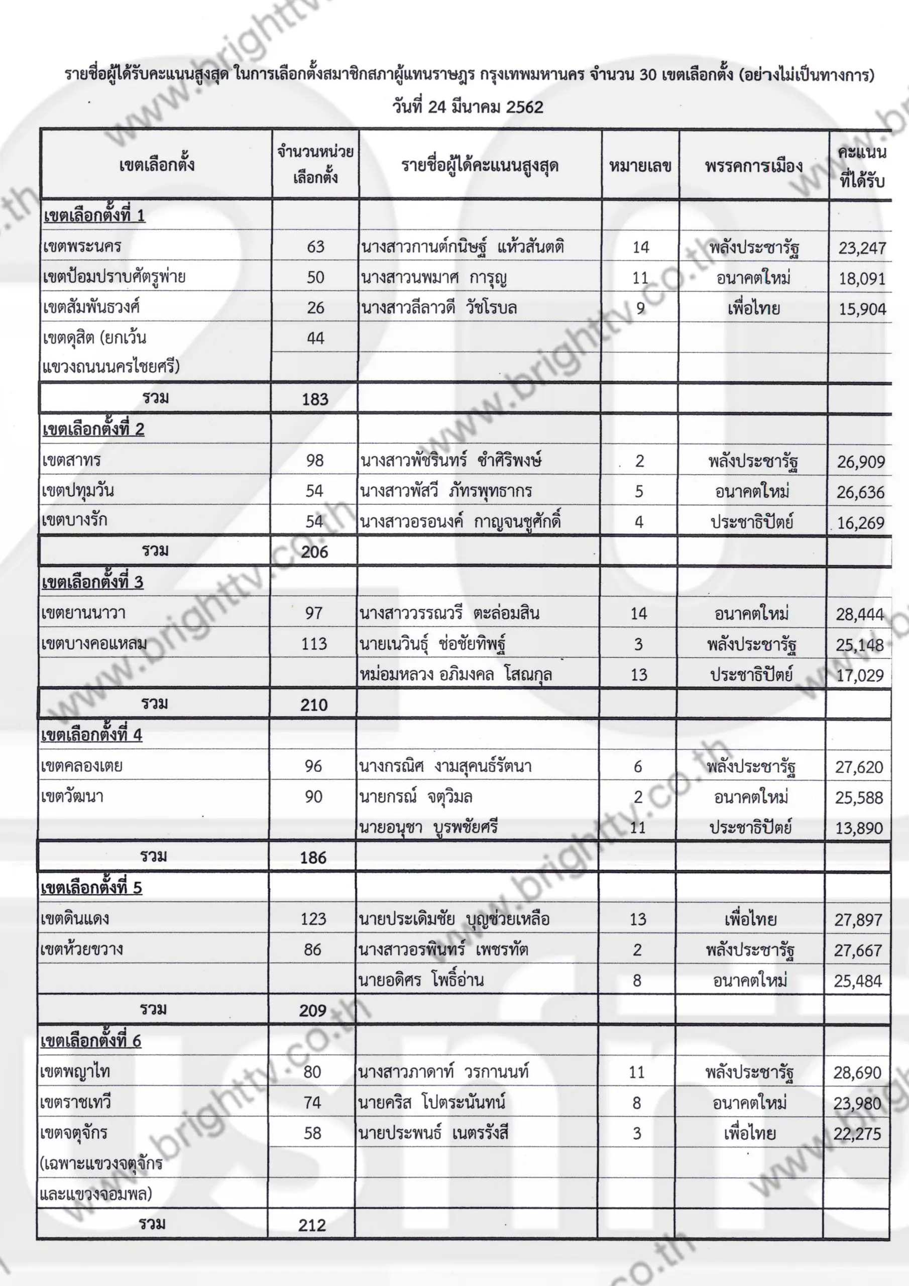 คะแนน กกต. กทม นับแล้ว 100 %อย่างไม่เป็นทางการ