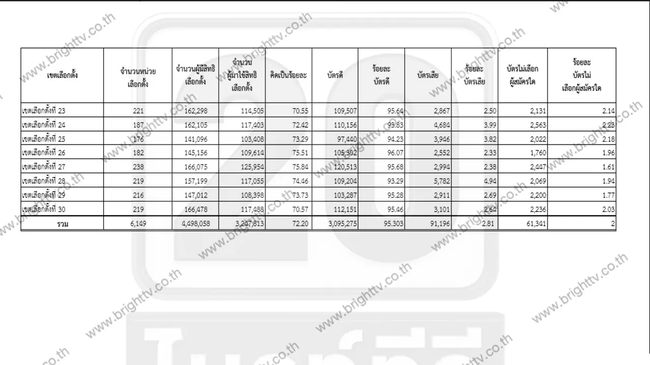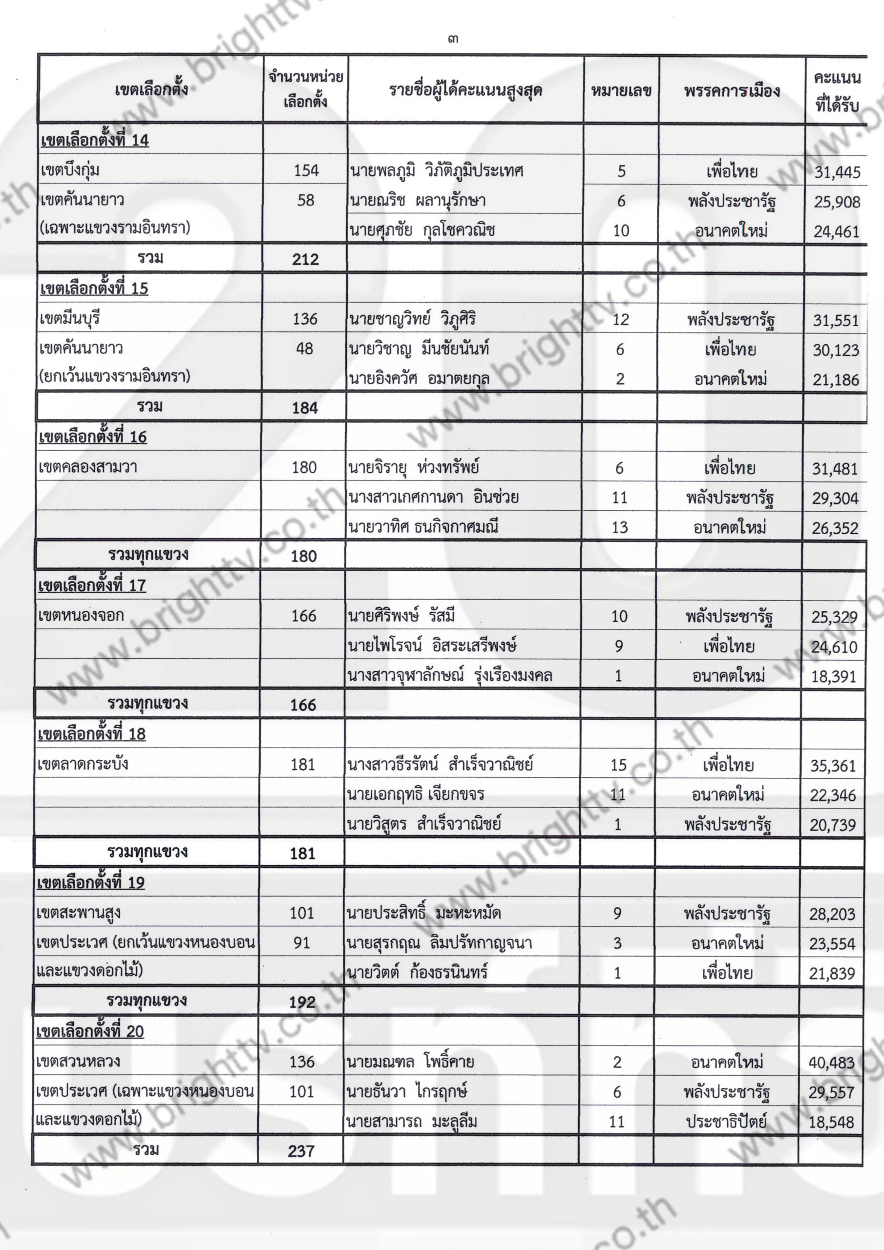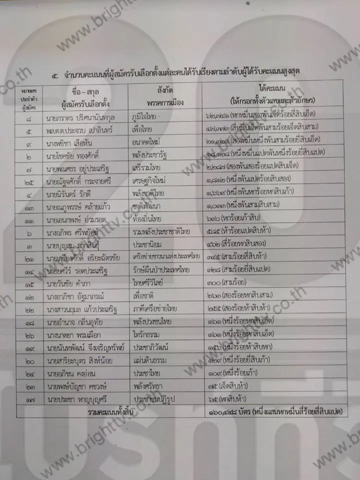 คะแนน กกต.จ.ปทุมธานี นับแล้ว 100 % อย่างไม่เป็นทางการ