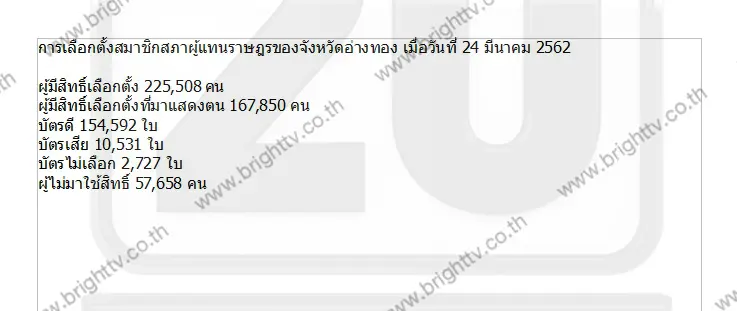 คะแนน กกต.จ.อ่างทอง นับแล้ว 100 % อย่างไม่เป็นทางการ