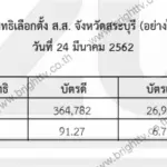 คะแนน กกต.จ.สระบุรี นับแล้ว 100 % อย่างไม่เป็นทางการ