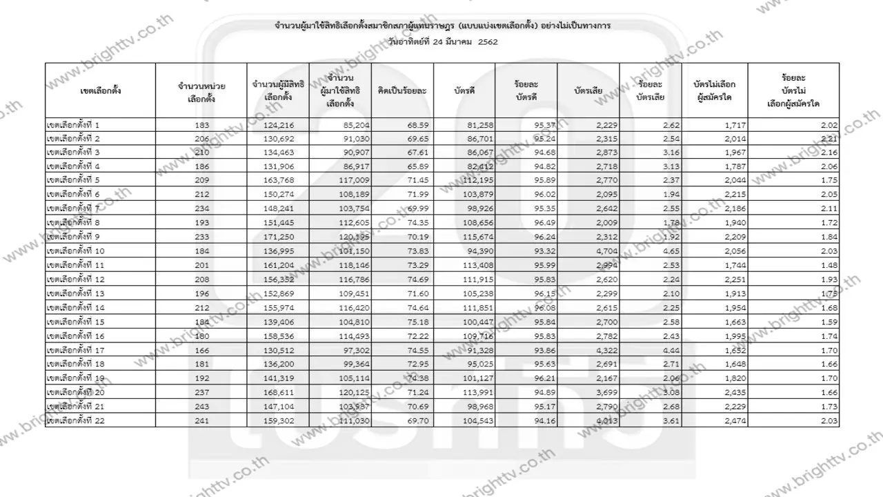 ผลเลือกตั้ง 2562 ผลการนับคะแนน ส.ส. ภาคอีสาน 100 % อย่างไม่เป็นทางการ
