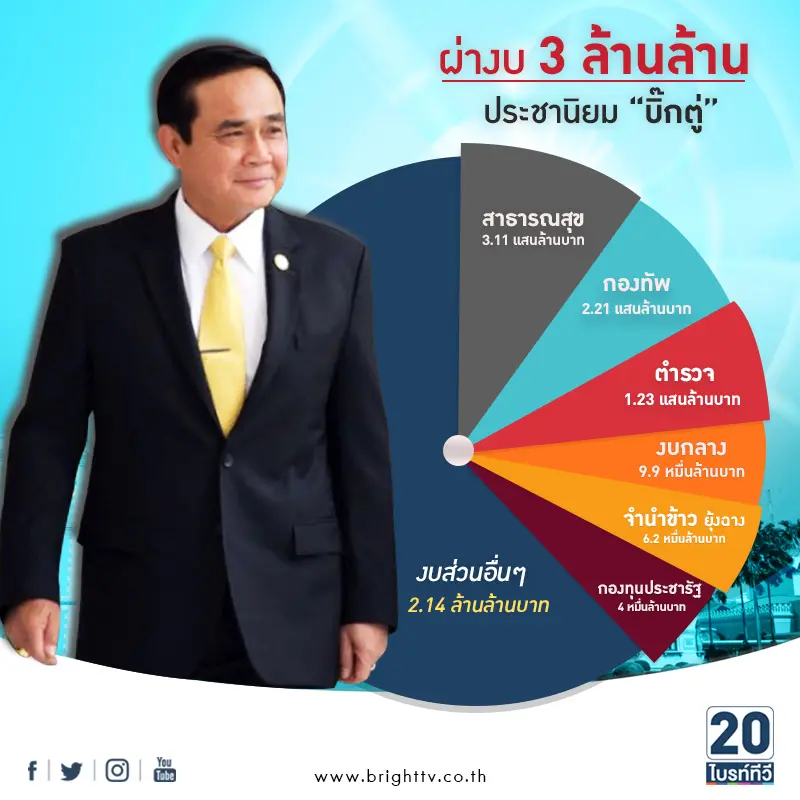 ก็เท่ากับว่าเงินก้อนโตที่รัฐบาลพล.อ.ประยุทธ์ อัดฉีดผ่านพ.ร.บ.งบปี 2562 จะเป็นหนึ่งในกระสุนนัดสำคัญที่จะมัดหัวใจมวลชน ก่อนที่วันเลือกตั้งจะมาถึง แม้ว่าล่าสุดพล.อ.ประยุทธ์ จะยังไม่ประกาศท่าทีทางการเมืองออกมาก็ตาม