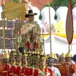 วันที่ 5 พ.ค. เวลา 16.25 น. พระบาทสมเด็จพระเจ้าอยู่หัว ทรงเครื่องบรมขัตติยราชภูษิตาภรณ์ ฉลองพระองค์ครุย สายสะพายจักรี สายสร้อยจุลจอมเกล้า ทรงพระมาลาเส้าสูง และทรงพระแสงขรรค์ชัยศรี เสด็จพระราชดำเนินจากพระที่นั่งจักรพรรดิพิมาน ไปยังพระที่นั่งไพศาลทักษิณ เสด็จออกพระที่นั่ง อมรินทรวินิจฉัยทางพระทวารเทวราชมเหศวร เสด็จฯ ไปประทับรถยนต์พระที่นั่งทางพระทวารเทเวศรรักษา ไปยังพระที่นั่งดุสิตมหาปราสาท