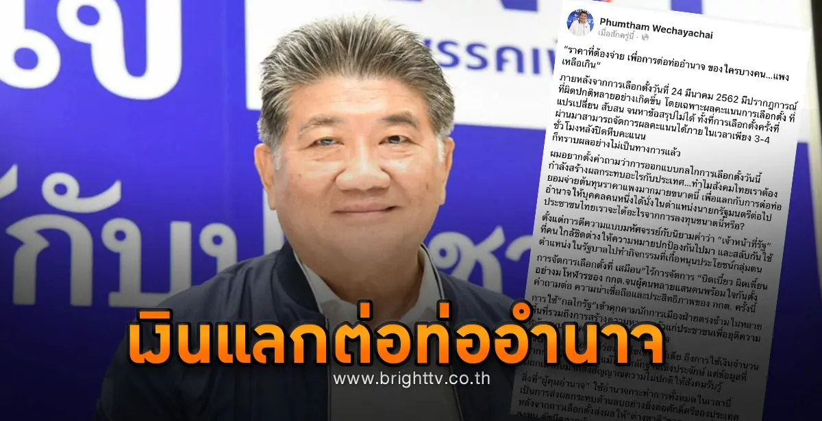 ผม อยากตั้งคำถามว่า การออกแบบกลไกการเลือกตั้งวันนี้กำลังสร้างผลกระทบอะไรกับประเทศ…ทำไมสังคมไทยเราต้องยอมจ่ายราคาแพงมากมายขนาดนี้ เพื่อแลกกับการต่อท่ออำนาจให้บุคคลคนหนึ่งได้นั่งในตำแหน่งนายกรัฐมนตรีต่อไป ประชาชนไทยเราจะได้อะไรจากการลงทุนขนาดนี้หรือ?