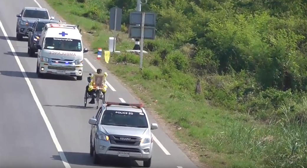 สำหรับ “ลุงคำพา” เคยโยกรถเข็นคู่ใจมาร่วมพิธีสำคัญในกรุงเทพหลายครั้ง โดยนี้เหลือระยะทางอีก 102 กม.ก็จะถึงจุดหมาย รวมระยะทางทั้งสิ้น 429 กม.
