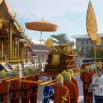 การนี้ พระบาทสมเด็จพระเจ้าอยู่หัว จะทรงประทับบนพระราชยานพุดตานทอง เสด็จฯจากเกยพระที่นั่งอาภรณ์พิโมกข์ปราสาท ในพระบรมมหาราชวัง ออกทางประตูวิเศษไชยศรี เลี้ยวขวาถนนหน้าพระลาน เลี้ยวซ้ายเข้าสู่ถนนราชดำเนินใน ถึงแยกผ่านพิภพ เลี้ยวขวาเข้าสู่ถนนราชดำเนินกลาง ถึงแยกคอกวัว เลี้ยวซ้ายเข้าถนนตะนาว ถึงวัดบวรนิเวศวิหาร ทรงนมัสการพระพุทธชินสีห์ พระประธานในพระอุโบสถ ถวายราชสักการะพระบรมราชสรีรางคาร พระบาทสมเด็จพระมงกุฎเกล้าเจ้าอยู่หัว และพระบาทสมเด็จพระปรมินทรมหาภูมิพลอดุลยเดช บรมนาถบพิตร
