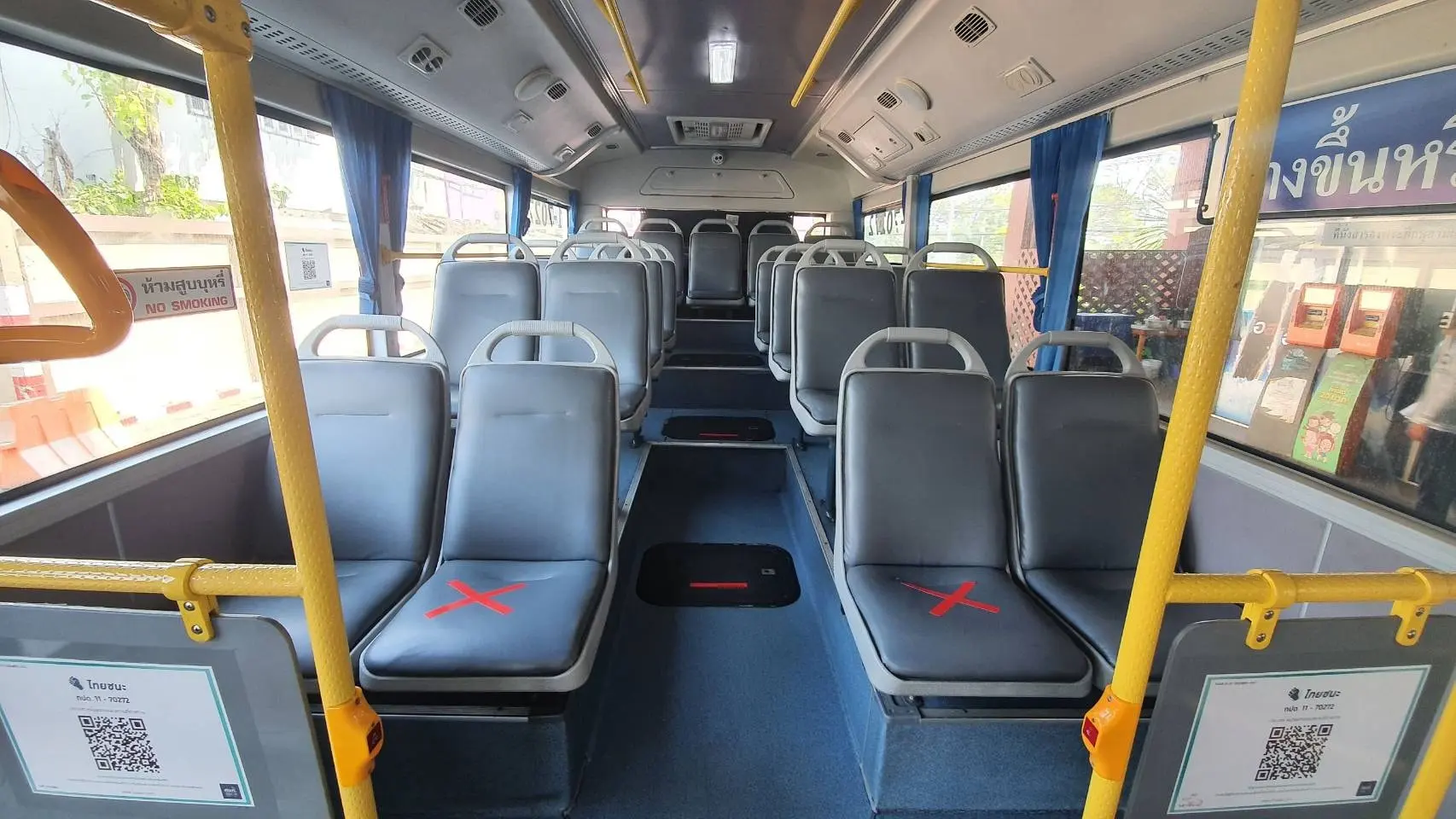 ซึ่งการกำหนดจุดนั่งและจุดยืนดังกล่าว สอดรับกับประกาศกรมการขนส่งทางบก เรื่อง “มาตรการปฏิบัติเพื่อควบคุมการแพร่ระบาด ของโรคติดเชื้อไวรัสโควิด – 19 สำหรับผู้ประกอบการรถโดยสารสาธารณะ รถยนต์สาธารณะ รถจักรยานยนต์สาธารณะ สถานีขนส่งผู้โดยสาร พนักงานขับรถ ผู้บริการและผู้โดยสาร” โดยให้ผู้ประกอบการขนส่งสาธารณะ จัดที่นั่งภายในรถโดยสารไม่ให้เกินร้อยละ 70 ของจำนวนที่นั่งทั้งหมด เพื่อลดความแออัดภายในรถโดยสาร