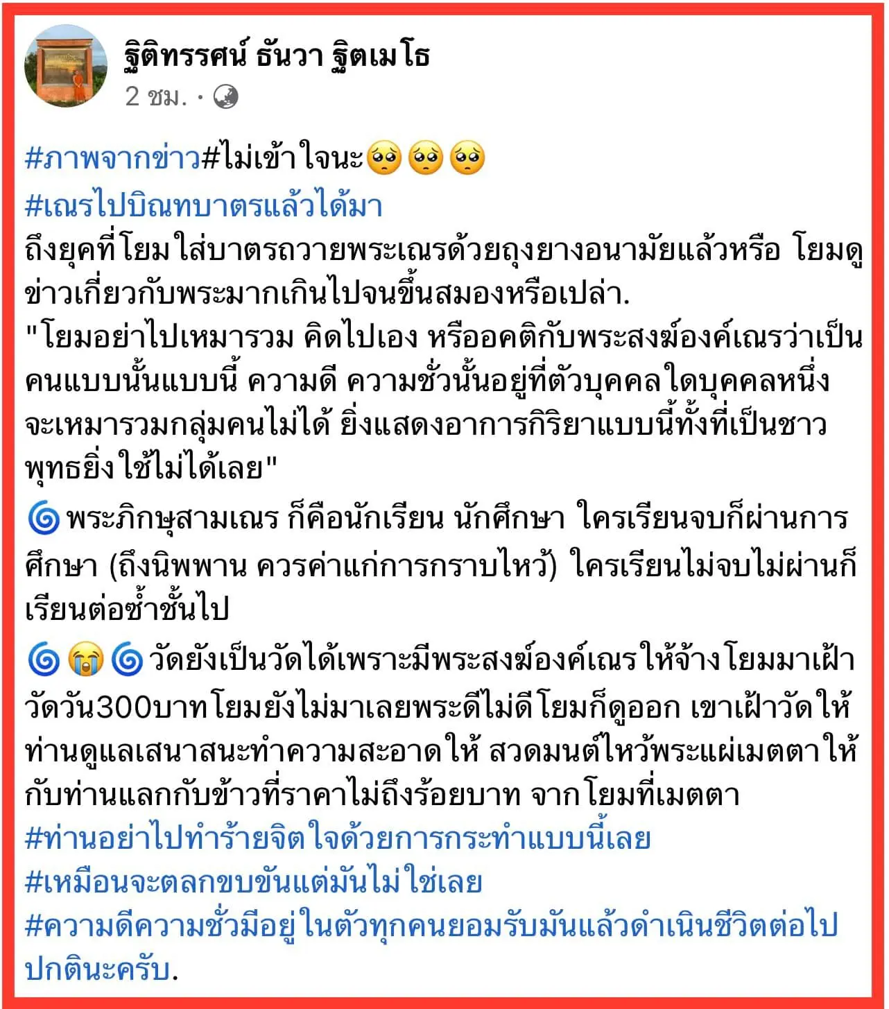 พบโยมใส่บาตรถวายพระเณรด้วยถุงยางอนามัย “โยมอย่าไปเหมารวม คิดไปเอง หรืออคติกับพระสงฆ์องค์เณรว่าเป็นคนแบบนั้นแบบนี้ จะเหมารวมกลุ่มคนไม่ได้“