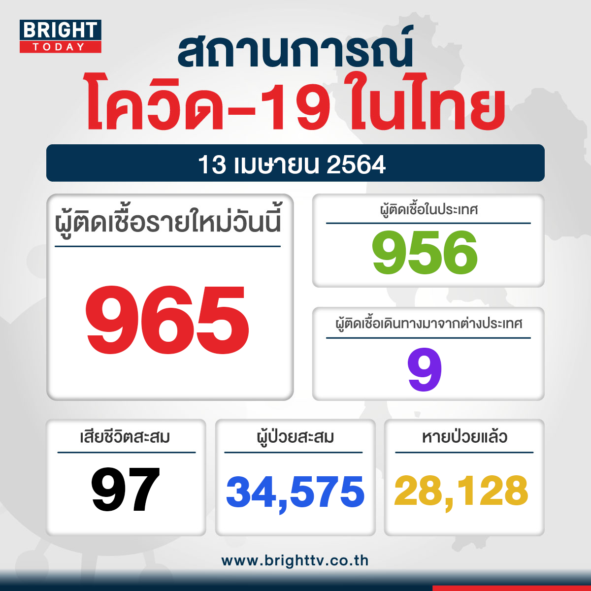 รายละเอียดผู้ป่วย โควิด-19 รายใหม่ วันที่ 13 เมษายน 2564 จำนวน 965 ราย มีดังนี้