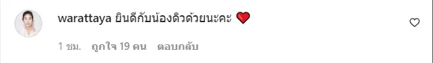 ในโพสต์ของ กุ๊บกิ๊บ สุมณทิพย์ ที่ได้มีการโพสต์ข้อความยินดีกับเพื่อนสนิทอย่าง ดิว อริสรา พร้อมกับเตรียมตัวเป็นคุณป้าคลั่งรักหลาน ในคอมเมนต์ก็ได้มีคนเข้ามาร่วมแสดงความยินดีเป็นจำนวนมาก รวมถึงทางด้านของ จุ๋ย วรัทยา ก็เป็นอีกหนึ่งคนในวงการที่ตอนนี้กำลังตั้งหน้าตั้งตากับการมีที่ทายาท เข้ามาร่วมอวยพรให้กับ ดิว อริสรา อีกด้วย