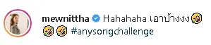 ล่าสุด คู่รัก นางเอกตัวท็อปของวงการอย่าง มิว นิษฐา ก็เอากับเค้าด้วย ควงคู่สามี ไฮโซเซนต์ เต้นคู่กัน โดยโพสต์คลิปวิดีโอ เต้นสุดน่ารักผ่านอินสตาแกรม พร้อมแคปชั่น ” Hahahaha เอาบ้างงง??? #anysongchallenge ” งานนี้ก็มีเพื่อนๆร่วมวงการเข้ามาแซวถึงความน่ารักของทั้งคู่มากมาย อาทิเช่น มาร์กี้ ราศรี , ณิชา ณัฏฐนิชา , มัดหมี่ พิมดาว , หญิง รฐา , นานา ไรบีนา , พลอย หอวัง , แต้ว ณฐพร , ดีเจเอกกี้