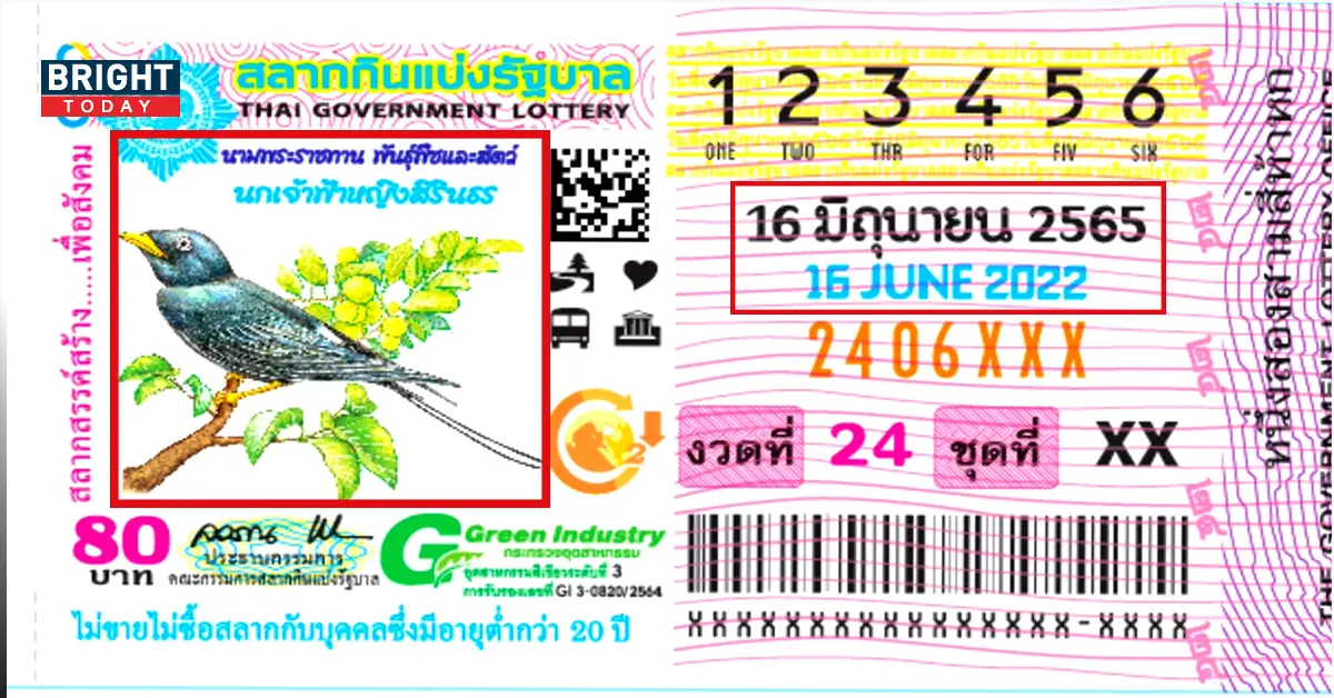 ไม่ปล่อยให้รอนาน หวยรัฐบาลไทย แปลปกสลาก แบบฉบับ คนสวนชวนฝัน แนวทางงวด16/6/65 ปกรูป นกเจ้าหญิงฟ้าสิรินธร