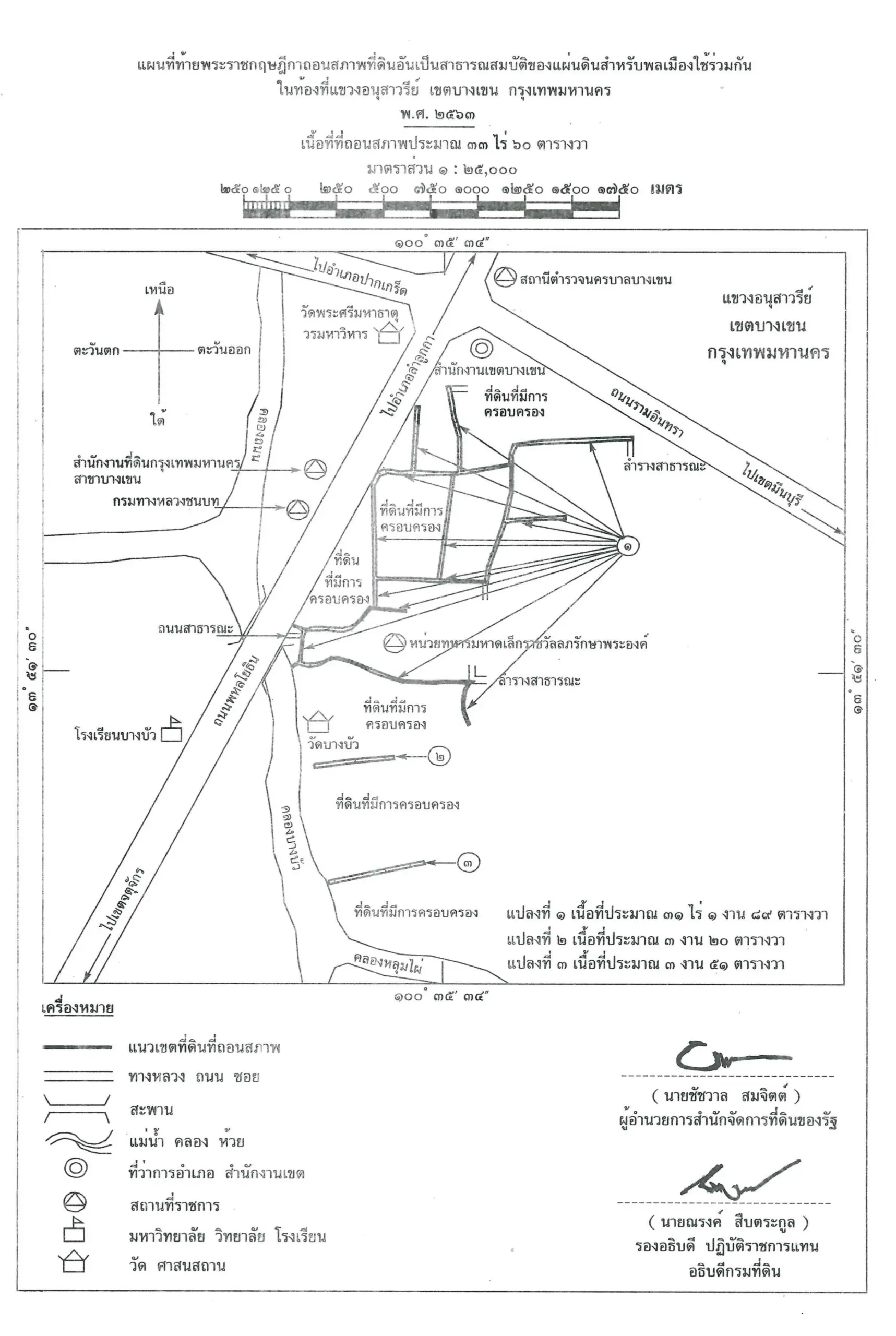 24 มิย. 63 ราชกิจจานุเบกษา ราชกิจจานุเบกษา เผยแพร่ประกาศ พระราชกฤษฎีกาถอนสภาพที่ดินอันเป็นสาธารณสมบัติของแผ่นดิน สำหรับพลเมืองใช้ร่วมกัน ในท้องที่แขวงอนุสาวรีย์ เขตบางเขน กรุงเทพมหานคร โดยมี พล.อ.ประยุทธ์ จันทร์โอชา นายกรัฐมนตรี เป็นผู้รับสนองพระบรมราชโองการ