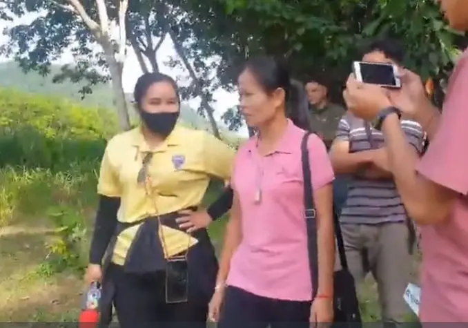 ขณะที่เมื่อวานนี้ (21 ก.ค.) เจ้าหน้าที่ตำรวจได้รับแจ้งจากผู้ใหญ่บ้านกกกอกว่า ชาวบ้านพบเสื้อสีส้ม-ขาวซุกอยู่ใต้กอไผ่ คล้ายเสื้อที่แจกกับรถไถ