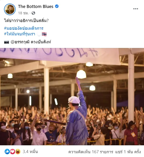 ภายหลังจากที่จบกิจกรรมชุมนุมแสดงออกทางการเมืองดังกล่าว แอมมี่ The Bottom Blues ได้มีการโพสต์เฟซบุ๊ก ซัดอธิการมช.ถึงปมร้อนทางการเมือง เพราะทางฝั่งของมหาวิทยาลัยไม่ให้พูดเรื่อง 10 ข้อเรียกร้อง