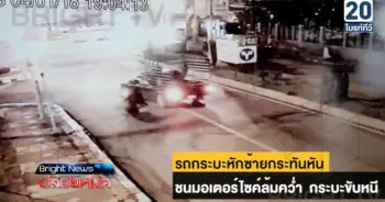 รถกระบะหักซ้ายกระทันหัน ชนมอเตอร์ไซค์ล้มคว่ำ กระบะขับหนี 03-04-61 (มีคลิป)
