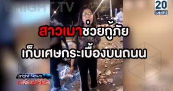 แชร์สนั่นคลิปสาวเมา ช่วยกู้ภัยเก็บเศษกระเบื้องบนถนน ด้วยวลี “เราต้องช่วยเค้า” 21 ธ.ค. 60 (มีคลิป)