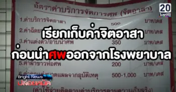 ประชาชนในอำเภอศรีราชา จังหวัดชลบุรี ร้องขอให้ทีมข่าวลงพื้นที่ตรวจสอบ การเรียกเก็บเงิน ในการนำศพออกจากโรงพยาล เนื่องจากสงสัยว่ามีค่าใช้จ่ายสูงเกินไปหรือไม่ และมีการระบุค่าจิตอาสาในใบเสร็จรับเงินด้วย ติดตามรายงานจาก รัชตะ ไทยตระกูลพาณิช