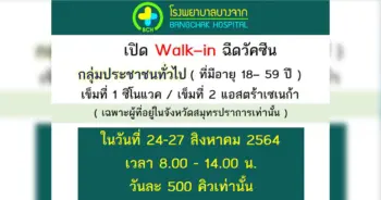 เริ่มวันนี้! รพ.บางจาก สมุทรปราการ เปิดวอคอินฉีดวัคซีน ชนิดไขว้ ให้คนในพื้นที่ วันละ 500 คิว เริ่ม 24-27 ส.ค. 64 ตั้งแต่เวลา 8.00-14.00 น.