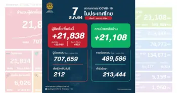 ยอดผู้ติดเชื้อพุ่งสูงอย่างต่อเนื่อง เริ่มวิกฤต โควิดวันนี้ ไฮนิวอีกครั้ง ตาย 212 ราย ติดเชื้อเพิ่ม 21,838 ราย ป่วยสะสมกว่า 7 แสนราย และฉีดวัคซีนครบแค่ 6.25%ของประชากร