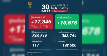 โควิดวันนี้ – รายงานสถานการณ์การแพร่ระบาดของเชื้อโควิด-19 ในวันที่ 30 กรกฎาคม 2564 โดยข้อมูลจากเพจเฟซบุ๊ก ศูนย์ข้อมูล COVID-19 พบผู้ติดเชื้อรายใหม่ 17,345 ราย