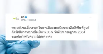 เลื่อนอีกแล้ว! AIS เลื่อนลงทะเบียนฉีดวัคซีน จากเวลาเดิม 13.00น. เป็น 17.00 น. ก่อนเจอชาวเน็ตลั่นเล่นอะไรกันอยู่? วันนี้จะได้ลงทะเบียนหรือไม่?