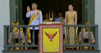 พระบาทสมเด็จพระเจ้าอยู่หัว พร้อมพระบรมราชินี เสด็จออกสีหบัญชร พระที่นั่งสุทไธสวรรย์ปราสาท “ทรงพระเจริญ” ดังกึกก้อง