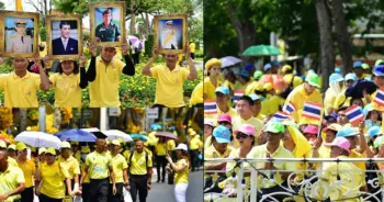 พระบาทสมเด็จพระเจ้าอยู่หัว เสด็จออกมหาสมาคม โดยสมเด็จพระเทพฯ นำถวายพระพรชัยมงคล