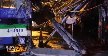 สภาพรถปรับอากาศสาย 77 สายห้างเซ็นทรัลพระราม3 – หมอชิต 2 เสียหลักพุ่งชนเสาไฟฟ้าขาดสองท่อนจนล้มพร้อมหม้อแปลง สายไฟห้อยระโยงระยาง เจ้าหน้าที่การไฟฟ […]