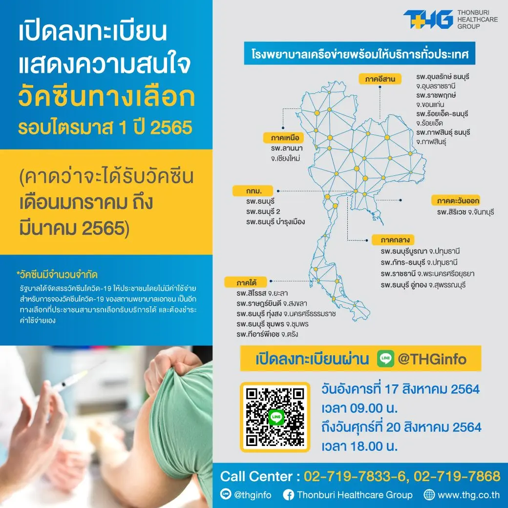บมจ.ธนบุรี เฮลท์แคร์ กรุ๊ป เปิดลงทะเบียนสำหรับผู้ที่สนใจวัคซีน โมเดอร์น่า รอบไตรมาส 1 ปี 2565 คาดว่าจะได้รับวัคซีนเดือนมกราคม ถึง มีนาคม 2565
