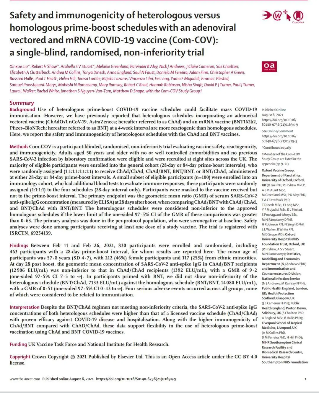 หมอนิธิพัฒน์ เผยผลทดลองฉีดวัคซีนไขว้ แอสตราฯ-ไฟเซอร์ ในประเทศอังกฤษ พบให้ภูมิคุ้มกันที่วัดทั้ง 4 วิธี ใกล้เคียงวัคซีนไฟเซอร์ 2 เข็ม