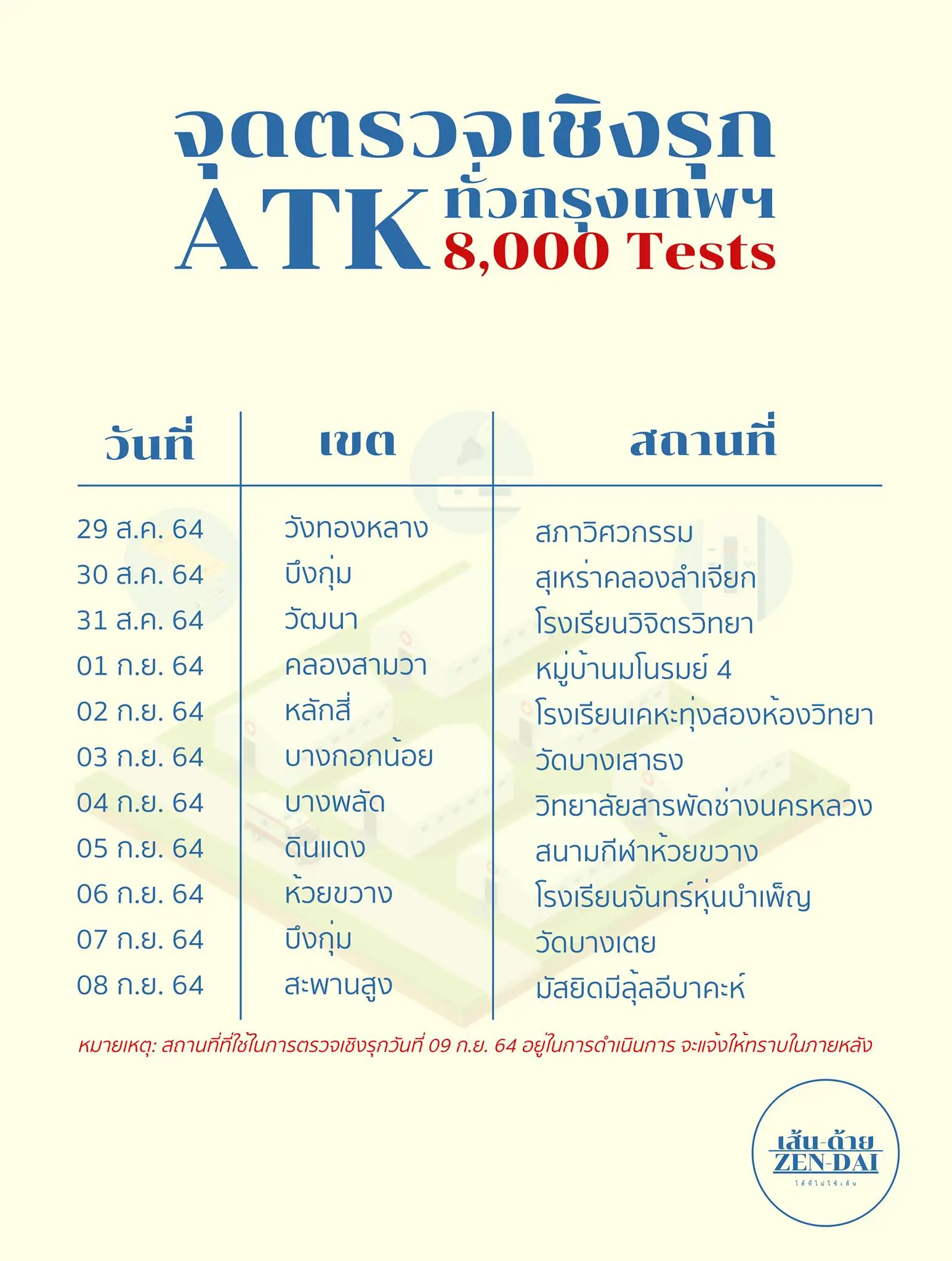ตารางตรวจเชิงรุกเส้นด้าย ATK 8,000 Tests ออกแล้ว ไม่เลือกเคส! ไม่เลือกคน! ไม่เลือกสัญชาติ!