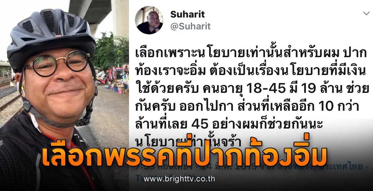 สุหฤท สยามวาลาทวิตข้อความก่อนออกเดินทางไปเลือกตั้ง แสดงจุดยืนจะเลือกพรรคไหน..?