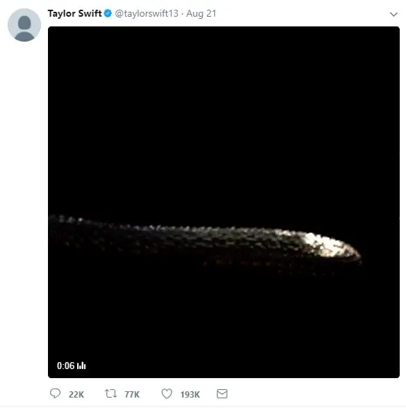 แถมสาวเทย์เลอร์ เธอยัง Unfollow ทุกคนในอินสตาแกรม ทวิตเตอร์ รวมทั้ง Unfriend เพื่อทุกคนในเฟซบุ๊ก แต่ล่าสุดเมื่อวานนี้ (22 ส.ค.60) สื่อโซเชียลมีเดียของสาวเทย์เลอร์ กลับมีการโพสต์คลิปวีดีโอสั้นๆ คล้ายรูปงูเลื้อยบนพื้นที่สีดำ