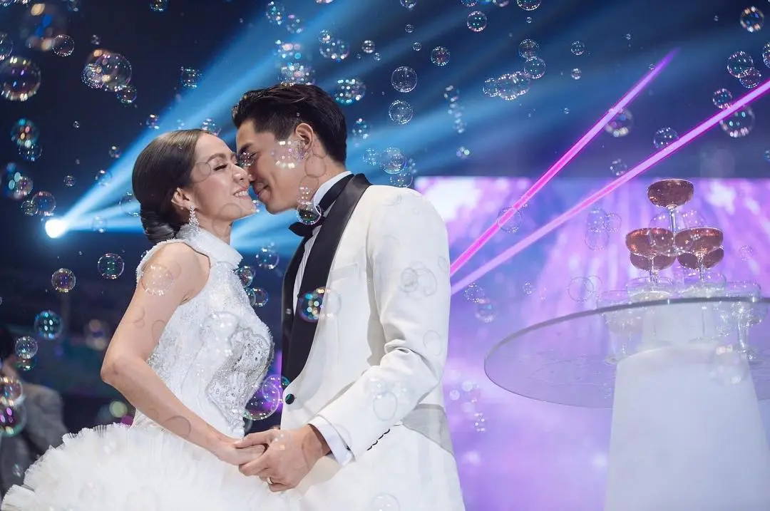 อีกคู่ที่ไม่พูดถึงไม่ได้ก็คือ สาว “นิว นภัสสร” และ หนุ่ม “เป๊ก เปรมณัช” ที่บอกเลยว่างานแต่งนั้น ยกดาวกันมาทั้งอวกาศ