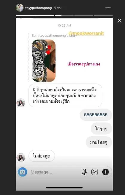 เป็นคู่รักข้าวใหม่ปลามัน เพราะเพิ่งเปิดตัวคบกันไปไม่นานนี้สำหรับ ทอย ปฐมพงศ์ และสาว มุก วรนิษฐ์ ซึ่งหลังจากเปิดตัวก็เป็นที่จับตามองของแฟนคลับอยู่ตลอด เนื่องจากคู่นี้มักจะหยอดคำหวานใส่กันเสมอ ล่าสุดหนุ่ม ทอย ได้ถ่ายภาพกางมวยแอบโชว์ขาอ่อนผ่านสตอรี่ไอจี ทำเอาแฟนสาวอย่าง มุก วรนิษฐ์ ปรี๊ดแตกออกอาการหวงหนักมากจนต้องไดเรกไอจีไปจัดหนักว่า “นี่ ดีๆหน่อย เอ็งเป็นของสาธารณะรึไง ชั้นจะไม่พูดบ่อยๆนะว้อย ขายของเก่ง ขายมั่งจะรู้สึก” ด้านหนุ่ม ทอย ต้องรีบออกมาโพสต์ภาพลงสตอรี่ไอจีว่า “เมื่อเราลงรูปกางเกง” เห็นอย่างนี้แล้วทำเอาเหล่าแฟนคลับแอบอมยิ้มกันไม่เบาแน่ๆ เมื่อฝ่ายหญิงหวงแรงขนาดนี้!!