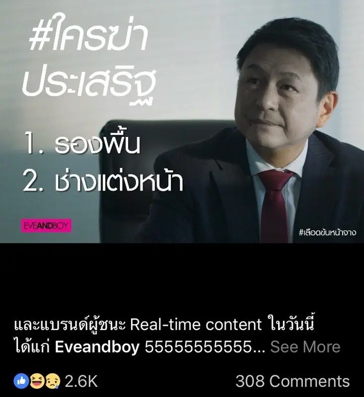 กลายเป็นเรื่องขำไม่ออกเมื่อตัวแทนทีมผู้บริหารของบริษัทร้านเครื่องสำอางค์ชื่อดัง อีฟ แอนด์ บอย (Eveandboy) ถึงกับต้องร่อนหนังสือชี้แจงในวันที่ 23 ก.ย กล่าวขอโทษที่นึกสนุกเกินขอบเขต สำหรับเหตุการณ์ที่ดึงเอาหนึ่งในนักแสดงจากละครเรื่อง เลือดข้นคนจางอย่าง “กบ ทรงสิทธิ์” มาล้อเลียนและดัดแปลงภาพเรื่องการแต่งหน้าด้วยประโยคยอดฮิต #ใครฆ่าประเสริฐ แม้จะเป็นเพียงเรื่องโจ๊กในโลกโซเชียล แต่ทางด้านเจ้าตัวและกลุ่มแฟนคลับกลับออกอาการไม่ตลกด้วย โดยเปรียบเหตุการณ์นี้เป็นเรื่องบูลลี่เล็กๆที่ขำไม่ออกนั่นเอง