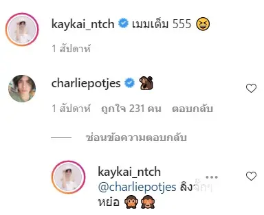 ซึ่ง เก๋ไก๋ ก็ได้มีการตอบกลับไปว่า ลิงจั๊กๆหยอ ทำเอาบรรดาชาวเน็ตต่างจับตามอง 2 คนนี้กันอย่างมากมายว่า เอ๊ะ มีอะไรในกอไผ่หรือเปล่าจ๊ะ งานนี้ก็ต้องมารอดูกันต่อไปนะจ๊ะว่าจะจริงหรือมั่ว