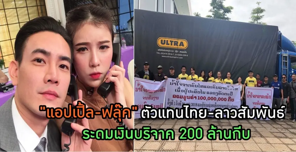 แอปเปิ้ล สีสะเหงียนภรรยาสาวสัญชาติลาวของนักแสดงหนุ่มฟลุ๊ค จิระ ขอเป็นตัวแทนศูนย์กลางระดมทุนเงินบริจาค เพื่อซื้อสิ่งของจำเป็นช่วยเหลือเหตุการณ์เขื่อนแตกที่ลาว