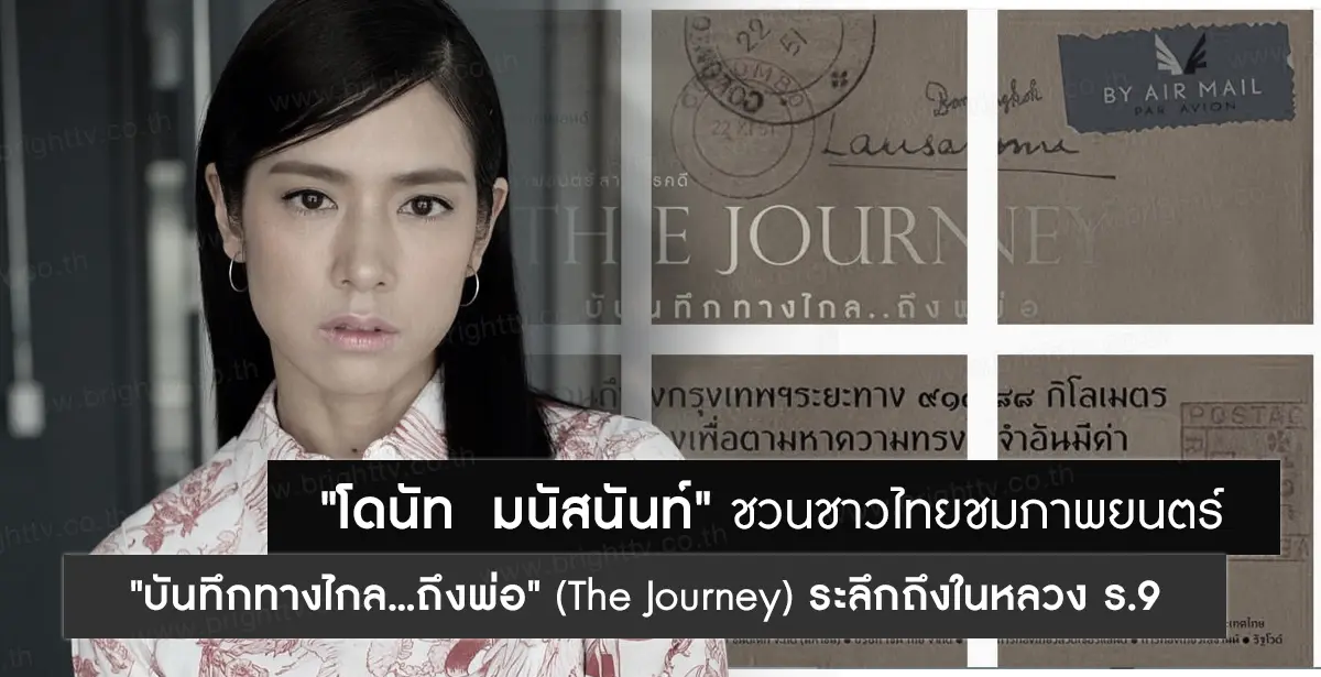 โดยภาพยนตร์สารคดี “บันทึกทางไกล…ถึงพ่อ” (The Journey) เรื่องนี้ จัดทำขึ้นเพื่อน้อมระลึกถึงในหลวงรัชกาลที่ 9 รวมถึงรวบรวมการเดินทางของพระองค์ เล่าเรื่องราวไล่เรียงลำดับ ตั้งแต่ที่พระองค์ประทับอยู่ที่เมืองโลซาน ประเทศสวิตเซอร์แลนด์