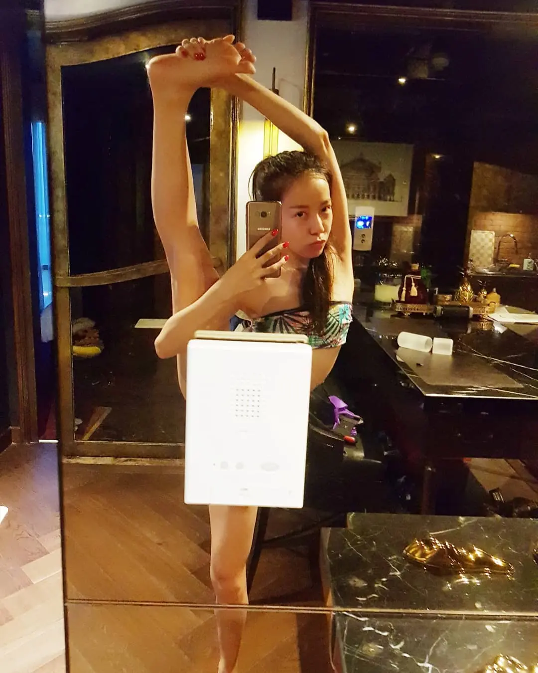 ทับทิม มัลลิกา มาเหนือเมฆโชว์ยืดเส้นด้วยท่าโยคะฉีกขาสูงช่างเป็นการออกกำลังกายที่แซ่บที่สุดในสามโลก