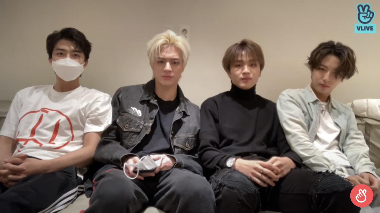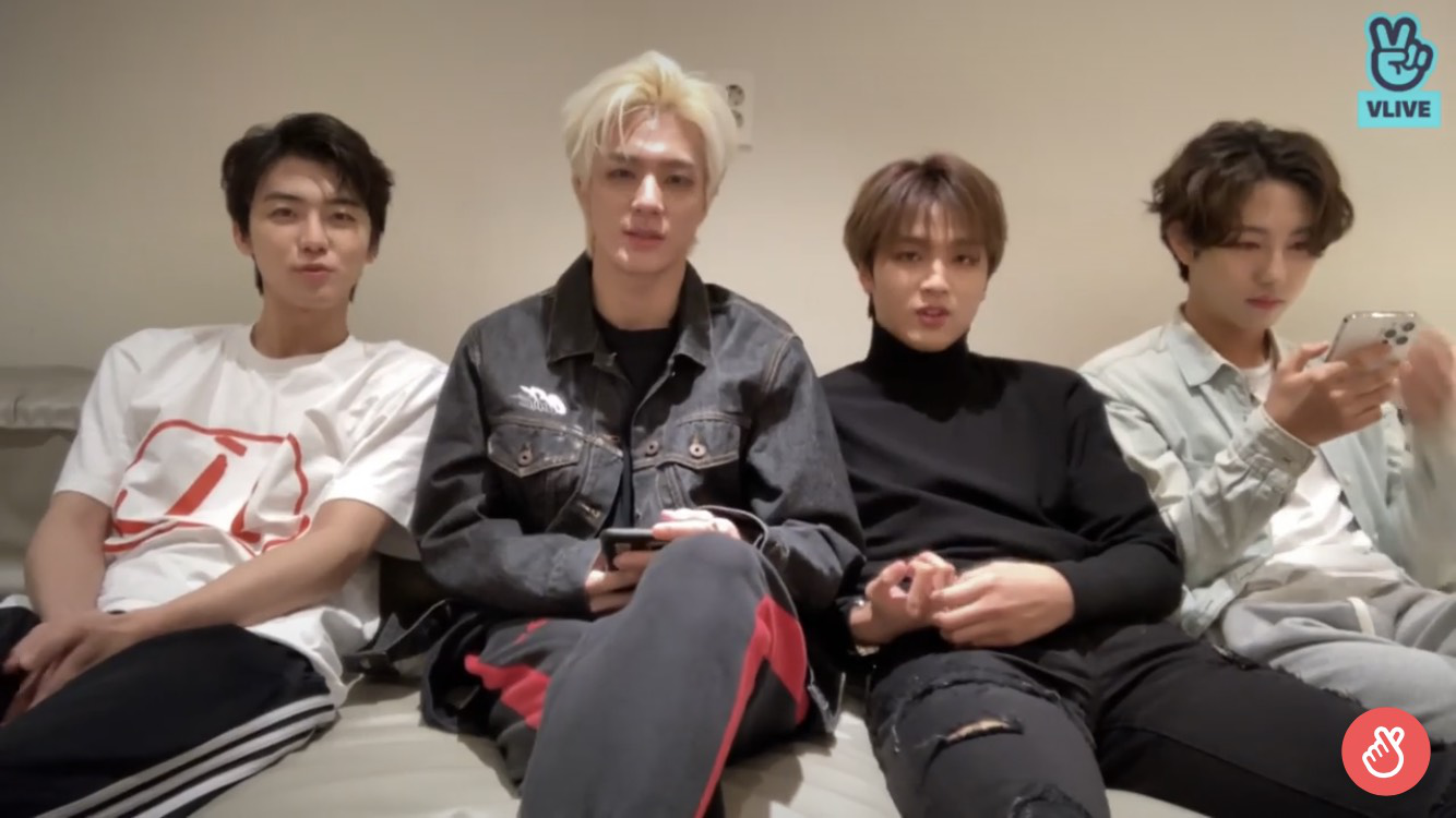 โดยหนุ่มๆ ทั้ง 4 คนได้มานั่งพูดคุยกับเหล่าแฟนๆ ผ่านแอปพลิเคชั่น vlive พร้อมทั้งได้มาเล่าเรื่องราวต่างๆ เพื่อคลายความคิดถึงให้กับเหล่าแฟนๆ ซึ่งบอกเลยว่า ทั้ง 4 คนในลุควันนี้นั้น ทำเอาแฟนๆ เขากรี๊ดกันไม่หยุดเลย เพราะว่าหล่อดูดีกันมากทุกคน เรียกได้ว่าดูไลฟ์ไป ก็สำลักความหล่อกันไปตามๆ กัน งานนี้บอกเลยว่าถึงขนาดที่ชื่อของเมมเบอร์อย่างแฮชาน แจมิน และเจโน่เขาถึงกับติดอันดับการพูดถึงในเทรนด์ทวิตเตอร์โลกเลยทีเดียว
