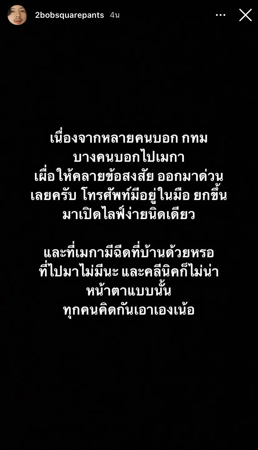 เเต่เพื่อความสบายใจ หนุ่มทูก็ได้อัปสตอรี่ผ่านทางไอจีของตัวเองว่า ถ้าข่าวนี้ไม่ใช่เรื่องจริง เเนะนำให้ไฮโซสาวคนดังกล่าว ออกมาไลฟ์สดเลย เพราะทางด้านของทูเอง ก็ได้บินไปฉีดวัคซีนPfizer ที่อมเริกามาเหมือนกัน ซึ่งเจ้าตัวก็บอกว่า ไม่น่าจะมีบริการฉีดให้ที่บ้าน เเละดูจากรูปที่หลุดออกมาเเล้วก็คงไม่ใช่ที่คลีนิคเเน่นอน