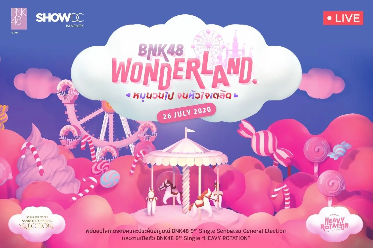 BNK48 เปิดตัวอย่างเป็นทางการแล้ว สำหรับ 9th Single “Heavy Rotation” ในงาน “BNK48 WONDERLAND หมุนวนไปจนหัวใจเตลิด” หลังจากที่ได้มีการปล่อย MV Teaser Heavy Rotation / BNK48 และ โปสเตอร์ Heavy Rotation ของสาวๆ BNK48 ออกมาให้ได้ชมกันอยู่เรื่อยๆ