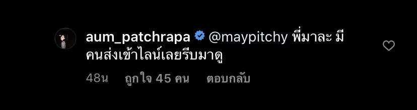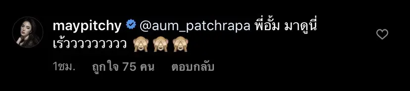 งานนี้ทำเอา เมย์ พิชญ์นาฏ ต้องลาก อั้ม พัชราภา เข้ามาแซวรัวๆว่า
